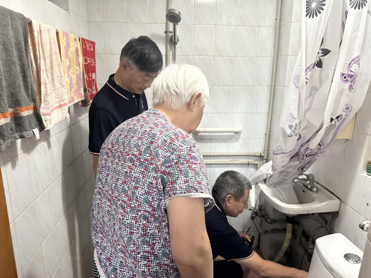 銀齡志愿者忻師傅和應師傅主動請纓,跟著社區(qū)網(wǎng)格員入戶查看老人家中的墻體結(jié)構(gòu)、水電布局,結(jié)合老人身高、行動習慣,制定“一戶一策”的安裝方案,確保扶手安裝既牢固安全,又貼合老人實際使用需求。